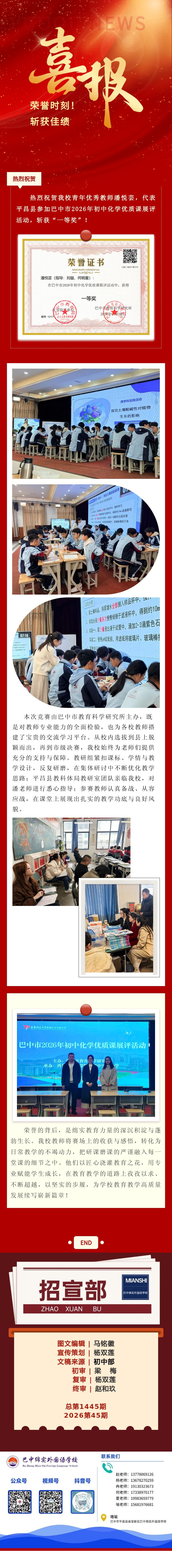 喜报||巴中绵实外教师荣获巴中市初中化学优质课展评一等奖
